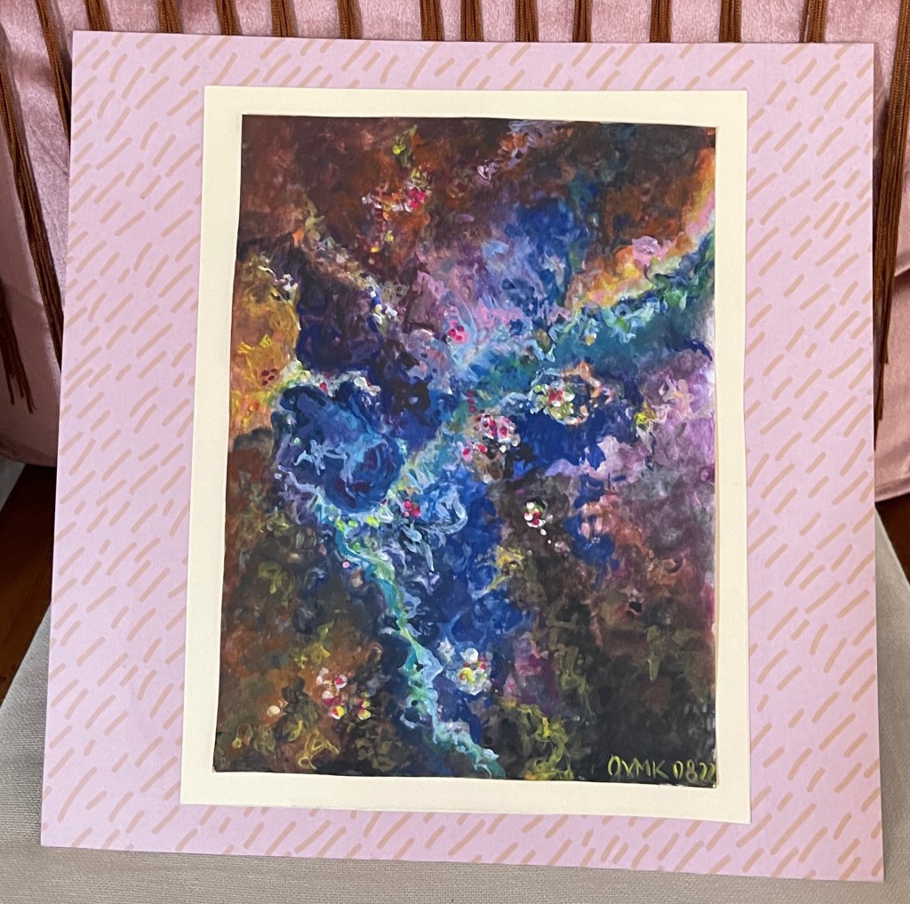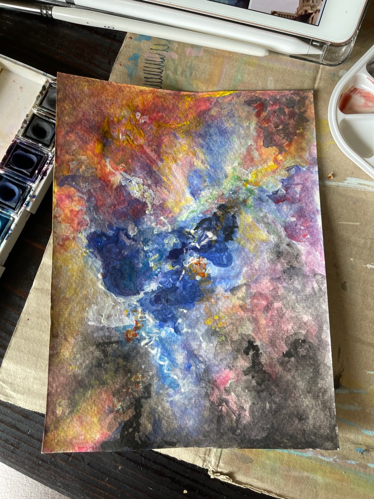You know what? I think I will start a new series with those “colours of the universe” – with acrylic or oil on canvas … See the result from that afternoon? Here you go with my step-by-step progress: