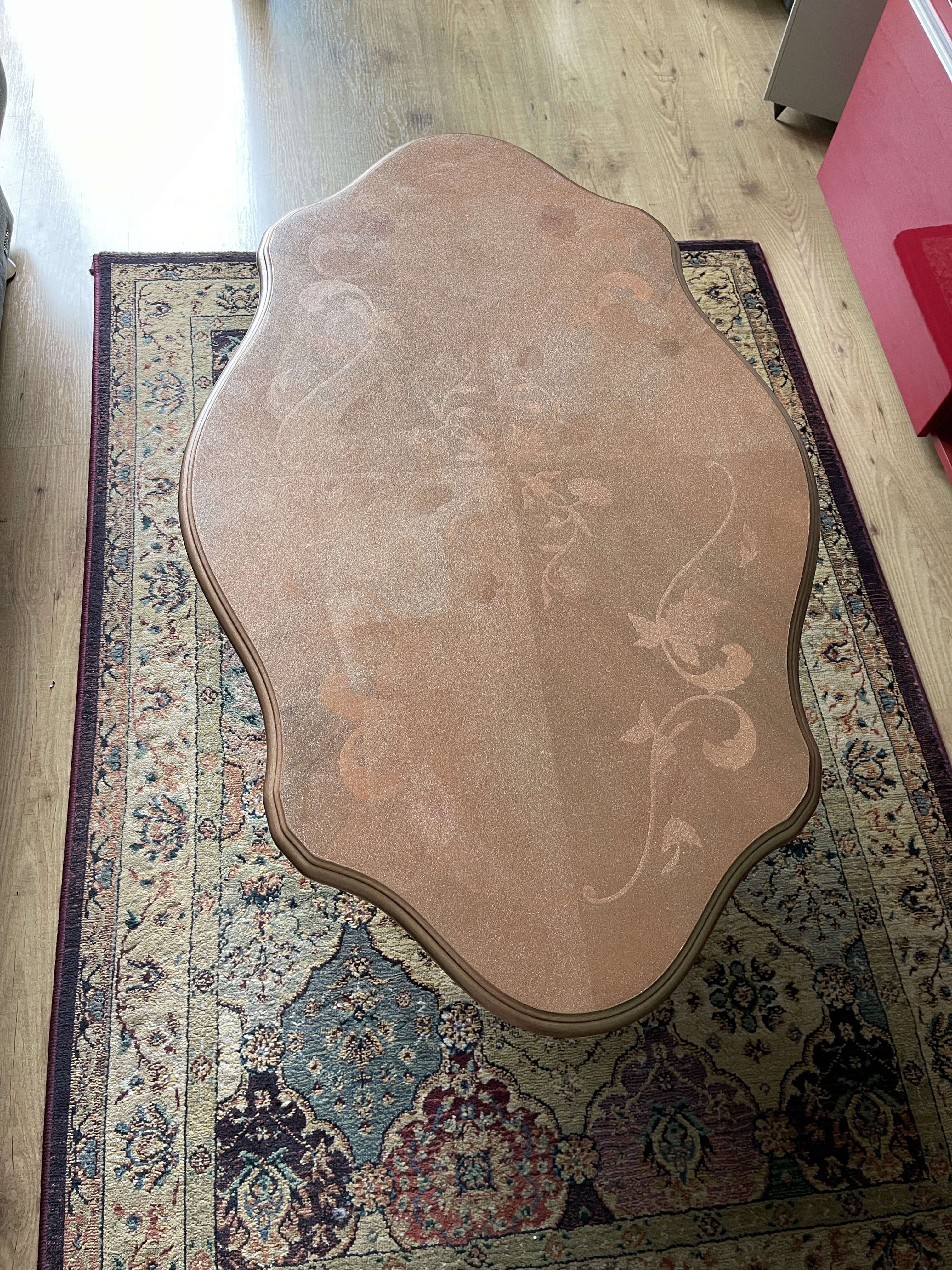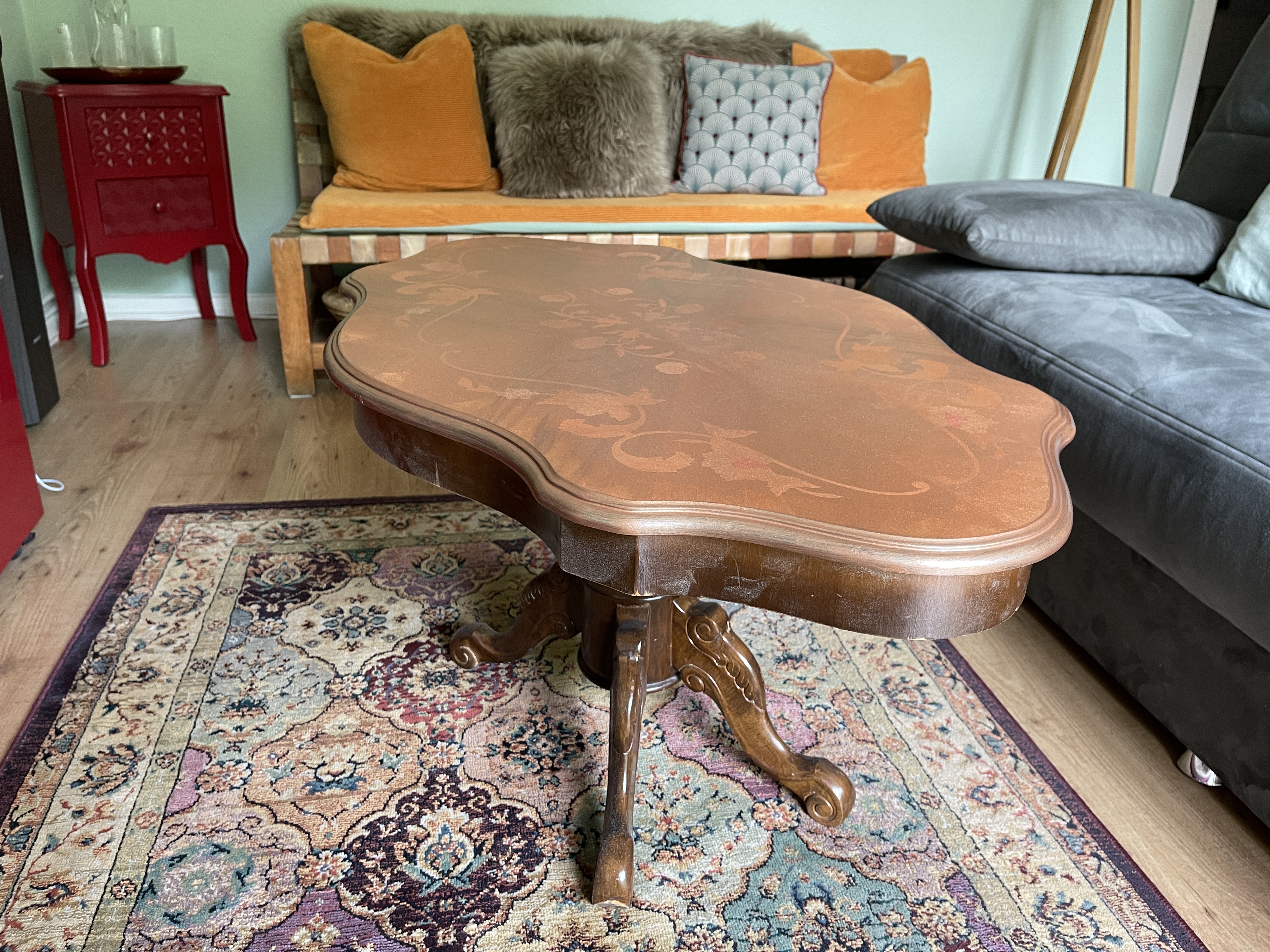 We had some yellow wall paint left – mixed some white and red in it, and created a fresh apricot colour for the second coat: