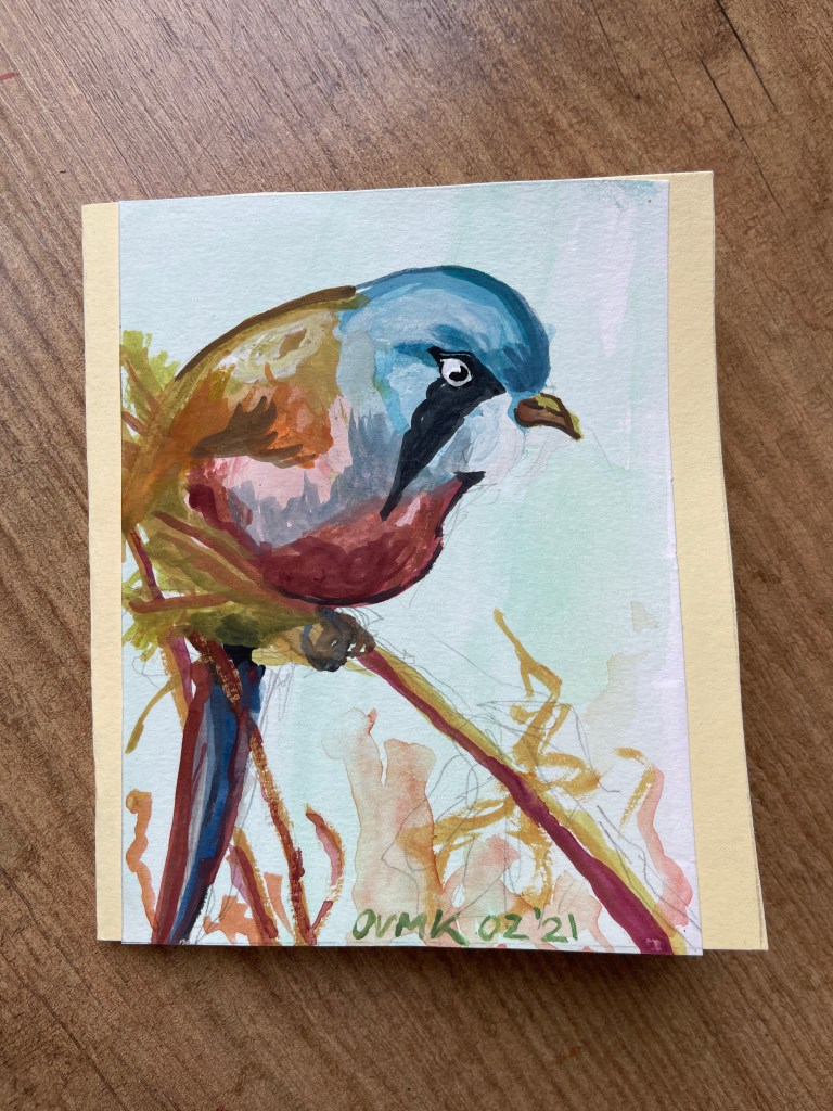 OUT OF THE BLUE. Watercolour on paper. 11*14 cm.THE WAITING ONE. Pencil and watercolour on paper. 11*14 cm.SKYSCRAPER. Watercolour on paper. 11*14 cm.THE FLUFFED UP. Pencil and watercolour on paper. 11*14 cm.VALLEY TURN. Watercolour on paper. 11*14 cm.ACTING EXOTIC. Watercolour on paper. 11*14 cm.SILENCE. Pencil and watercolour on paper. 11*14 cm.
