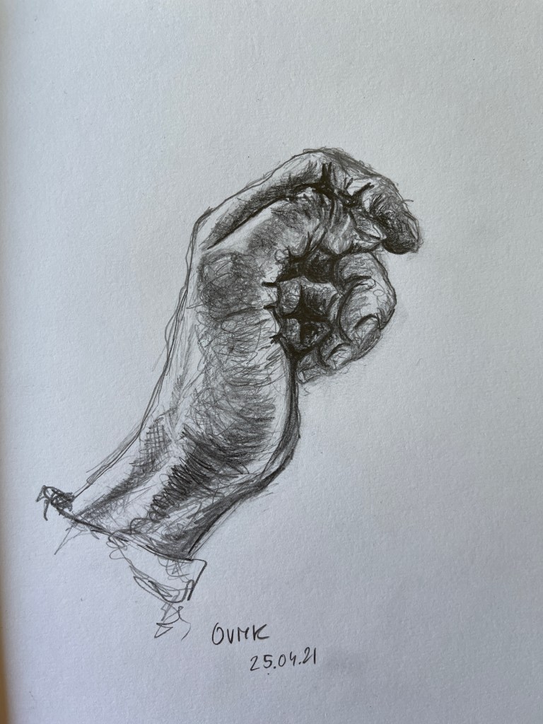 Issue of this one is: drawing hands! Seems simple, but drawing hands can really be a challenge – all those wrinkles, shadows in combination with movement and liveliness – not easy ;)!!