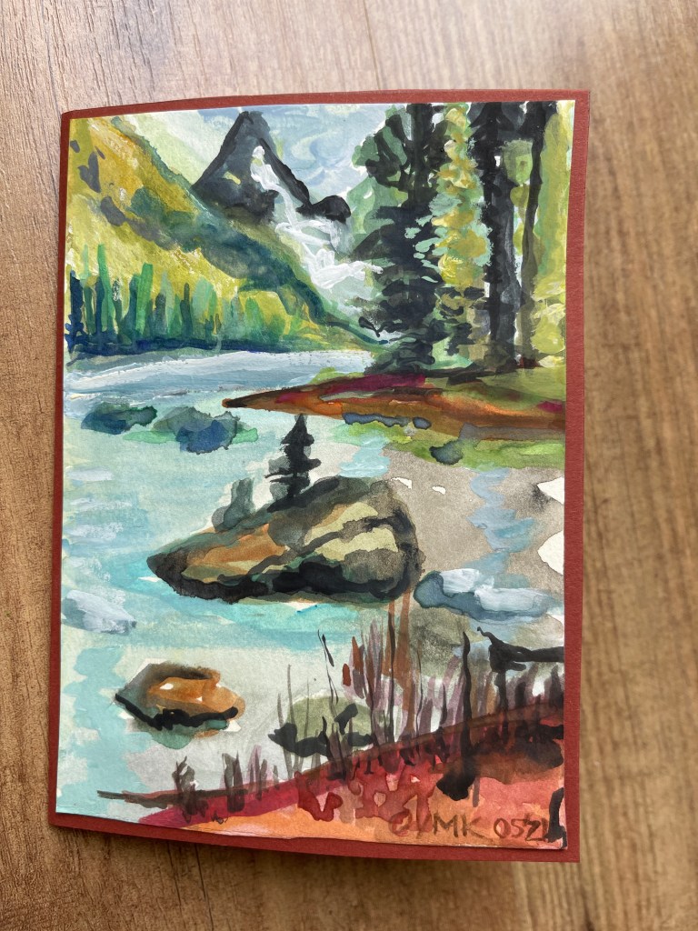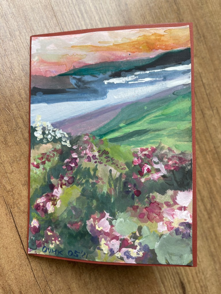 I worked on some new card motives the last couple of weeks and would like to share some new landscapes with you (see my last Card Post here). My childhood friend said to the both first ones showing the poppies: “They remind me of Monet!” – what an honour! Here you go …